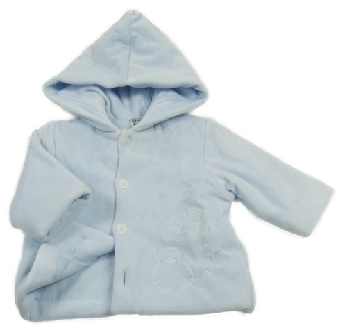 Světlemodrý sametový zateplený kabátek s tučňáčkem a kapucňou Sarah Louise
