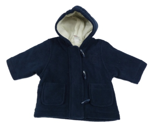 Tmavomodrý fleecový zateplený kabátek s medvedíkom a kapucňou Adams