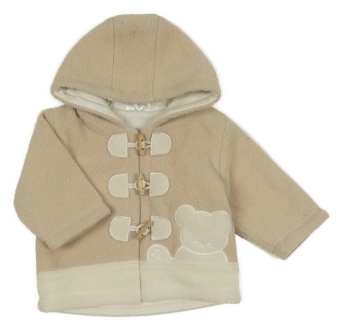 Béžovo-bílý fleecový podšitý kabátek s medvedíkom a kapucňou