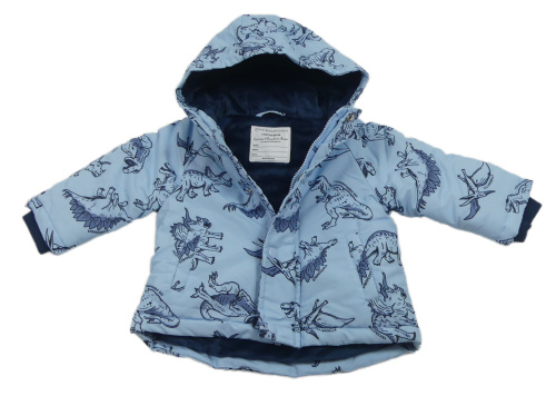 Svetlomodrá šušťáková zimná bunda s dinosaurami a kapucňou Primark