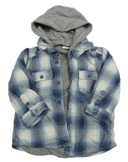 Modro-biela kockovaná podšitá košeľová bunda s kapucňou H&M