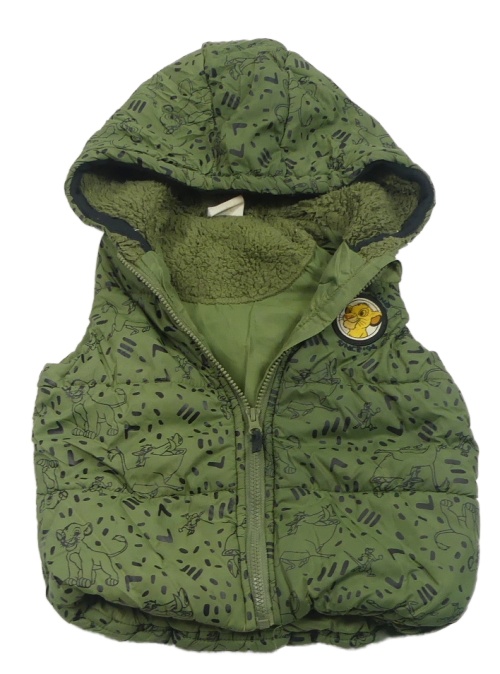 Khaki vzorovaná šušťáková zateplená vesta s kapucí - Levíý kráľ Disney