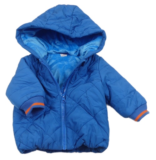 Modrá šušťáková prešívaná zimná bunda s kapucňou