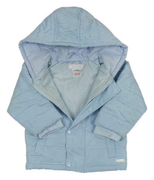Svetlomodrá prešívaná šušťáková zateplená bunda s kapucňou