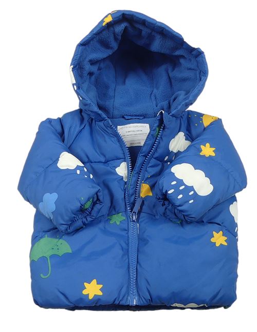 Modrá šušťáková zimná bunda s mráčikmi a kapucňou Primark