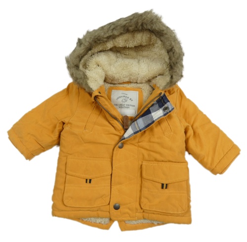 Horčicová šušťáková zimná bunda s kapucňou s kožešinou George
