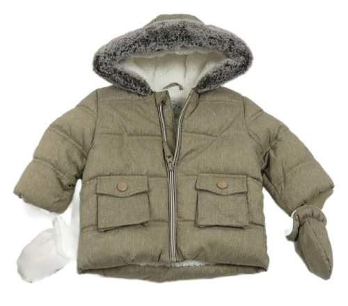 Béžová šušťáková zimná bunda s kapucí + rukavice George