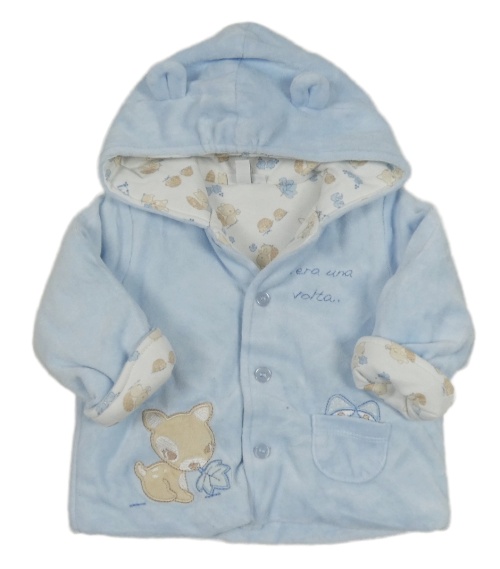 Světlemodrý sametový zateplený kabátek so srnkou a kapucňou