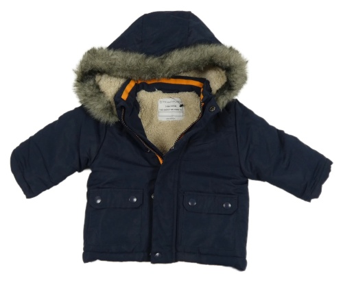 Tmavomodrá šušťáková zimná bunda s kapucňou s kožešinou Primark