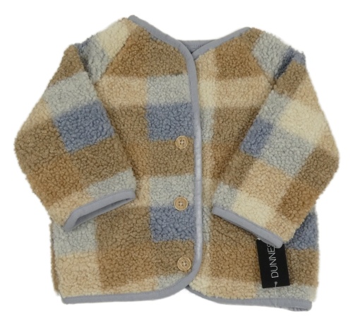 Nové - Béžovo-modrá kockovaná huňatá podšitá bunda Dunnes