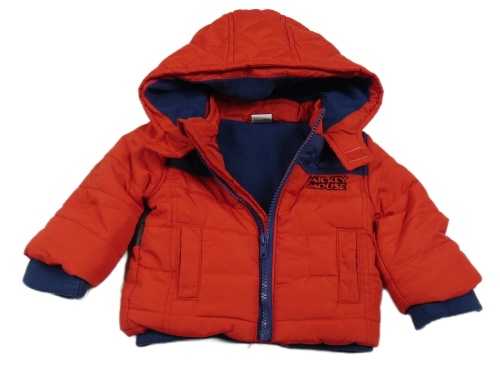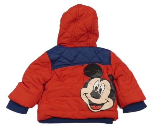Červeno-modrá šušťáková zimná bunda s Mickey Mousem a kapucňou Disney