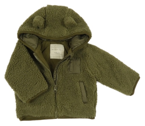 Khaki huňatá zateplená bunda s kapucňou Matalan