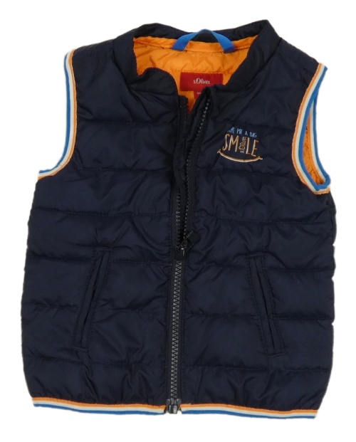 Tmavomodrá šušťáková zateplená vesta s nápisom S. Oliver