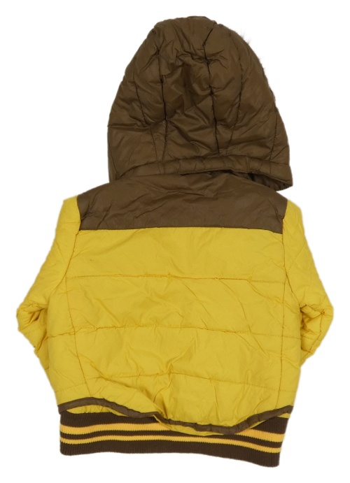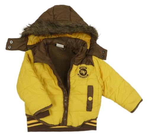 Žlto-hnedá šušťáková zimná bunda s nášivkou a kapucňou