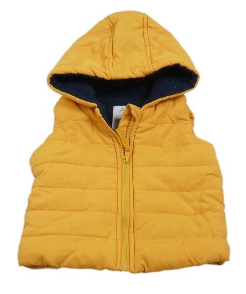 Žlutooranžová prešívaná šušťáková zateplená vesta s kapucňou F&F
