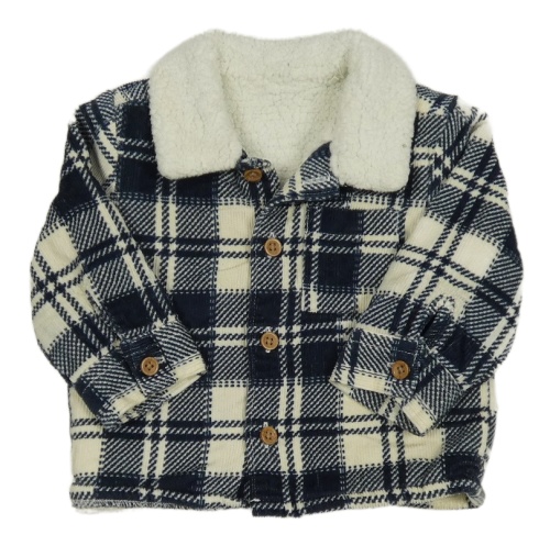 Tmavomodro-smotanová kockovaná menšestrová zateplená košeľová bunda Tu