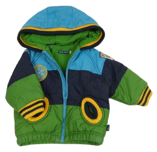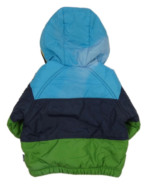 Zeleno-tmavmodro-svetlomodrá šušťáková zimná bunda s kapucňou