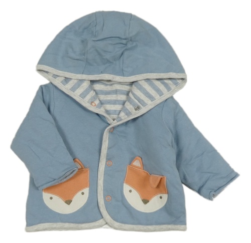 Světlemodrý zateplený kabátek s liškami/kapsami a kapucňou
