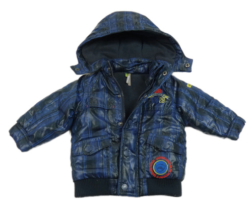 Čierno-modrá kockovaná šušťáková zimná bunda s odopínacíá kapucňou