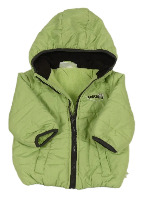 Svetlozelená šušťáková zimná bunda s nápisom a kapucňou