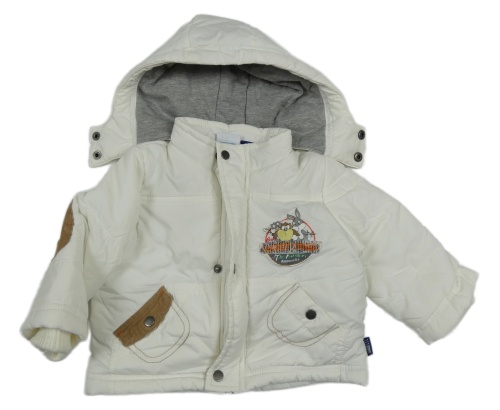 Biela šušťáková zateplená bunda s Looney tunes a kapucňou