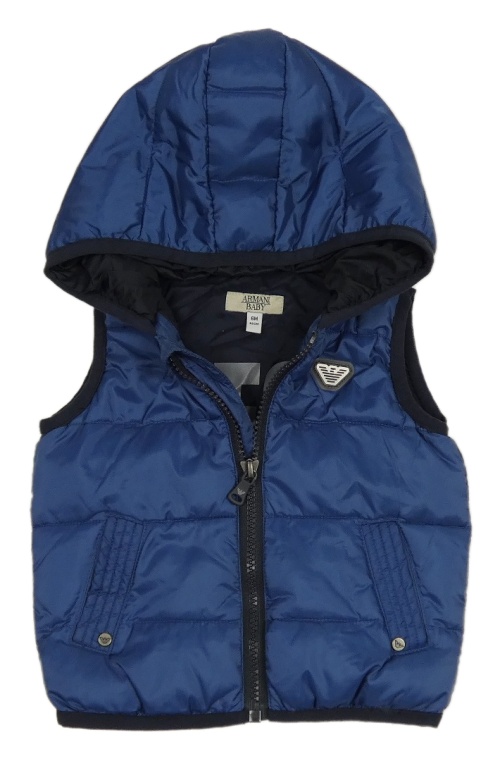 Tmavomodrá šušťáková zateplená vesta s nášivkou a kapucňou Armani