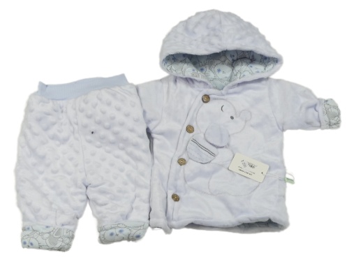 2Set - Světlemodrý plyšový zateplený kabátek so slonom a kapucí + minky nohavice