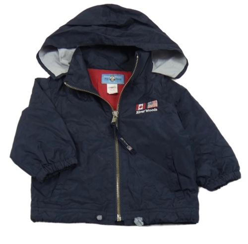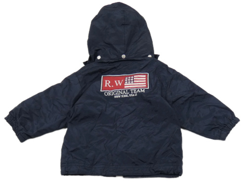 Tmavomodrá šušťáková jarná bunda s vlajkami a kapucňou