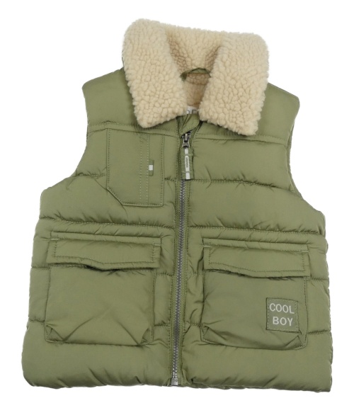 Khaki šušťáková zateplená vesta s nápisom F&F