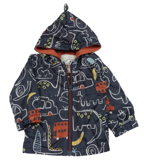 Tmavomodrá šušťáková jarná bunda s obrázky a kapucňou s ostny George