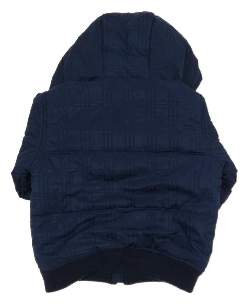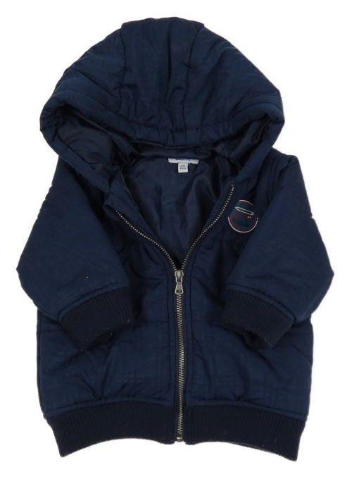 Tmavomodrý kostkovaný šusťákový zimní bomber s nášivkou a kapucňou absorba