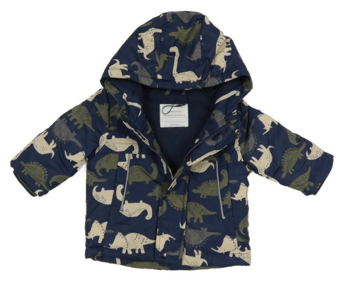 Tmavomodrá šušťáková zimná bunda s dinosaurami a kapucňou Primark