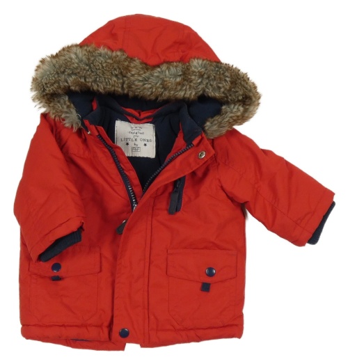 Červená šušťáková zimná parka s kapucňou s kožešinou F&F