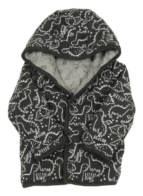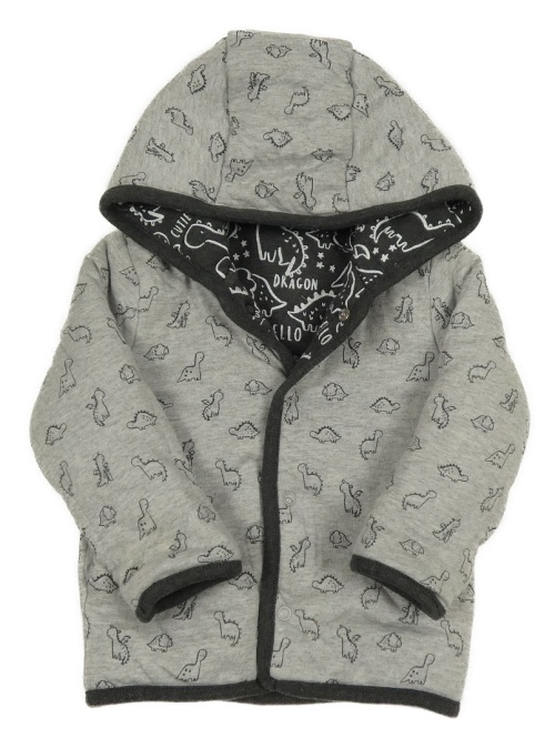 • Tmavošedý melírovaný zateplený oboustranný kabátek s dinosaurami a kapucňou George