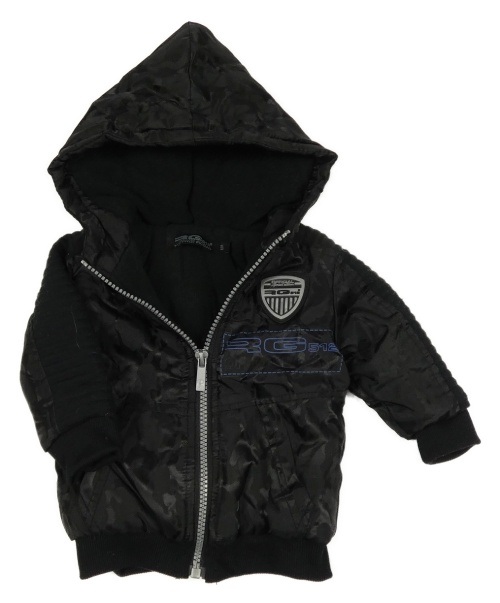 Čierna šušťáková army zateplená bunda s nápisom a kapucňou