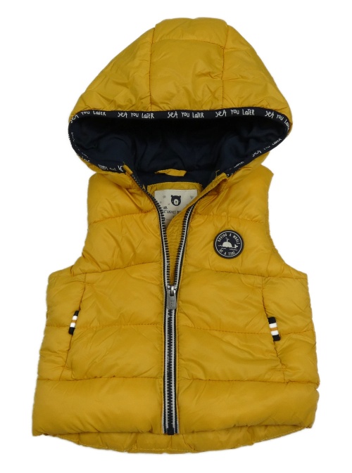 Žltá šušťáková zateplená vesta s nášivkou a kapucňou C&A