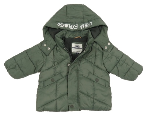 Khaki šušťáková prešívaná zateplená bunda s kapucňou