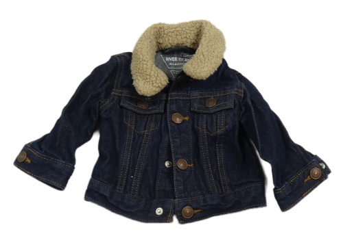 Tmavomodrá rifľová bunda s huňatým golierikom RIVER ISLAND