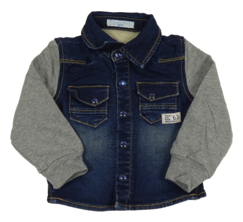 Tmavomodro-šedá riflovo/tepláková bundomikina s nášivkou