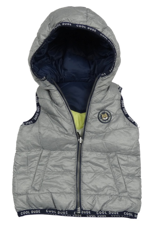 Sivá melírovaná šušťáková zateplená obojstranná vesta s kapucňou C&A