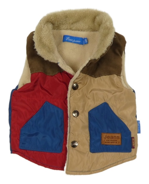 Hnedo-béžovo-červená šusťákovo/semišová zateplená vesta