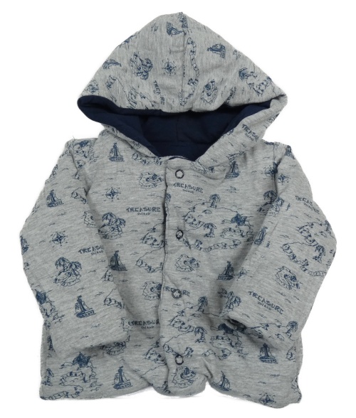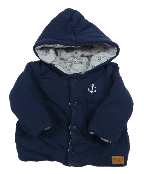 Tmavomodrý zateplený oboustranný kabátek s kotvou a kapucňou Topomini