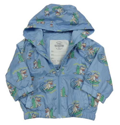Svetlomodrá šušťáková jarná bunda s dinosaurami a kapucňou M&S