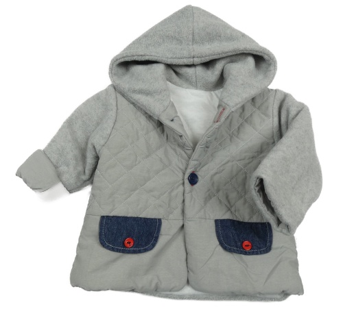 Sivá prešívaná šusťákovo/fleecová zateplená bunda s kapucňou Bébé Caramel