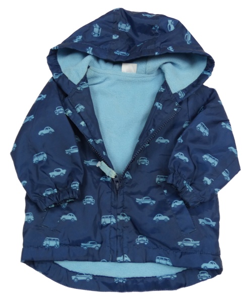 Tmavomodrá šušťáková jarná bunda s autami a kapucňou F&F