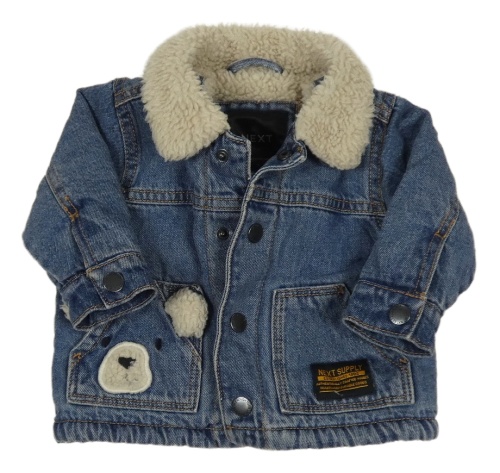 Modrá rifľová zateplená bunda s medvěďom Next