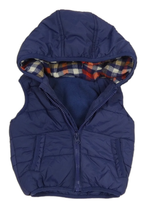 Tmavomodrá šušťáková prešívaná zateplená vesta s kapucňou F&F