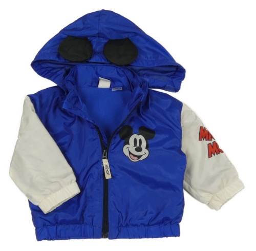 Kobaltově modro-biela šušťáková jarná bunda s Mickeym a kapucňou H&M
