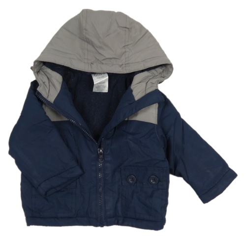 Sivo-tmavomodrá šušťáková zateplená bunda s kapucňou Baby