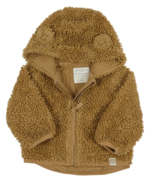 Hnedá huňatá podšitá bunda s kapucňou s uškami M&S